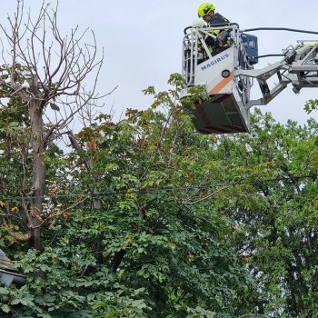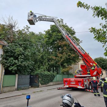 Gegen 09:00 Uhr wurden wir zum ersten Einsatz des Tages mit dem Stichwort „T1 Tierrettung – Katze auf Baum“ gerufen. Eine Katze befand sich auf einer Baumkrone eines Privatgrundstücks. Passanten nahmen diese von der Straße aus wahr und verständigen die Einsatzkräfte. Bei unserem Eintreffen war bereits die Stadtpolizei vor Ort. Ein Besitzer oder Besitzerin der Katze konnte vorerst auch nicht ausfindig gemacht werden. Nach Erkundung der Lage wurde die Straße von der Polizei gesperrt, die Drehleiter der Feuerwehr in Stellung gebracht und alles für die Rettung vorbereitet. Als sich die Kameraden der Katze näherten, ergriff diese die Flucht und sprang selbstständig über mehrere Äste auf den Boden in den Garten des Grundstücks. Zwischenzeitlich ist auch die erfreute Besitzerin vorbeigekommen, die ihren Kater schon seit einiger Zeit vermisste.