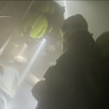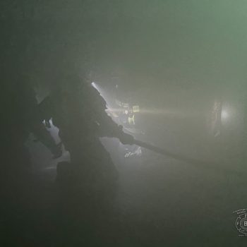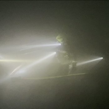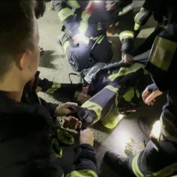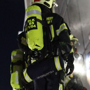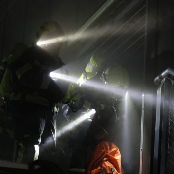 Für den Ablauf wählte man diesmal jedoch einen ganz anderen Weg als bisher üblich. Nachdem alle Übungsteilnehmer vor Ort eintrafen, wurden diese in zwei Gruppen aufgeteilt. Es galt dann dasselbe Szenario von jeder Gruppe, unter Beobachtung der anderen Gruppe, hintereinander abzuarbeiten. Während die einen vorgingen, konnte die anderen mit Wärmebildkameras von der Galerie aus den eingesetzten Atemschutztrupps zusehen. Diese Atemschutztrupps hatten jedoch keine Wärmebildkameras zur Verfügung und mussten sich quasi bei fast Nullsicht orientieren. Ziel war es das erlernte Wissen von der gemeinsamen Atemschutz-Abschnittschulung am Jahresbeginn weiter zu vertiefen bzw. auch Techniken/Abläufe anzuwenden, sowie bei einem Unfall im Atemschutzeinsatz richtig zu handeln.