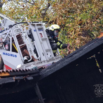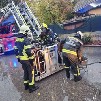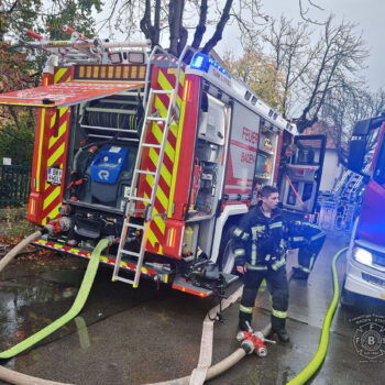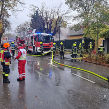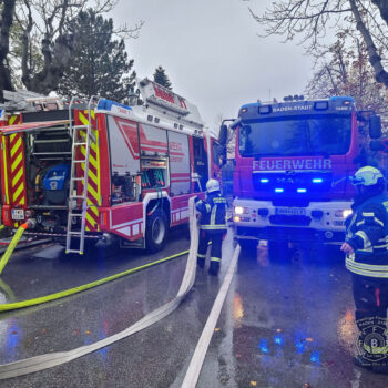 Auch die Freiwillige Feuerwehr Baden-Stadt wurde am Freitag (03.11.23) zu dem Dachstuhlbrand im Ortsteil Weikersdorf aufgrund der Alarmstufe B3 alarmiert. Glücklicherweise stellte es sich dann aber als „nur“ um einen Brand in der an das Gebäude angebauten Pergola heraus, der rasch von den drei Badener Feuerwehren unter Kontrolle und gelöscht werden konnte.