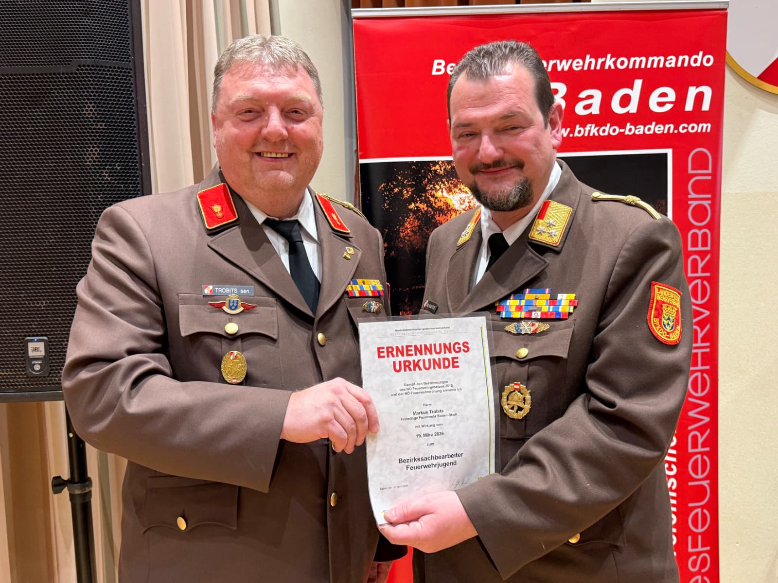 … unserem Kameraden Rudolf Wandl zur Ernennung zum Leiter des Verwaltungsdienstes des Bezirkes Baden sowie zum Bezirkssachbearbeiter für Feuerwehrgeschichte.