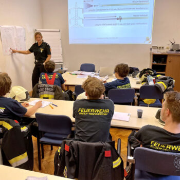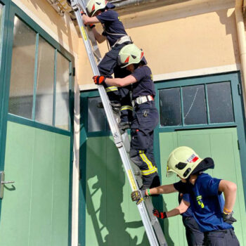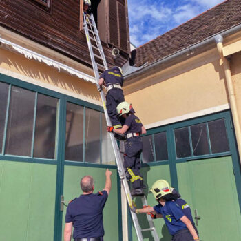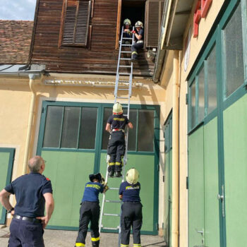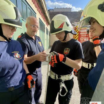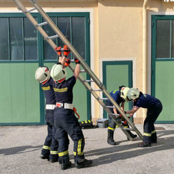 Die Ausbildner Abschnittssachbearbeiter OBI Robert Lichtenauer und LM Andrea Helm unserer Feuerwehr, sowie HBM Gerhard Filip von der FF Baden Weikersdorf vermittelten dabei die Lehrinhalte: „Der Feuerwehreinsatz & Befehle neu – Leinen, Knoten und Rettungsmittel – Verhalten in der Gruppe – Gefahren an der Einsatzstelle, sowie tragbare Leitern“.