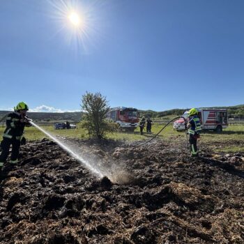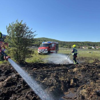 Zum letzten Einsatz des Tages wurde die Einsatzbereitschaft zu einem brennenden Baum alarmiert. Bei der Ankunft stellte sich dann heraus, dass es sich um Heuballen handelte, welche noch leicht rauchten. Mittels HD- und C Rohr sowie einer Löschlanze konnte der Brand bekämpft werden. Nach einer dreiviertel Stunde konnten wir wieder in das Feuerwehrhaus einrücken.