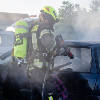 Wenige Augenblicke nachdem die Puppe gerettet wurde, fing das andere Fahrzeug, welches am Unfall beteiligt war, zum Brennen an. Der bereitgestellte Brandschutz dämmte den Brand zu nächst ein, bis ein Atemschutztrupp das Feuer rasch löschte.