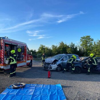 Am Mittwoch, dem 29. Mai, beübten wir das Befreien von Personen nach einem Verkehrsunfall und zeitgleich das rasche Löschen eines Entstehungsbrandes.