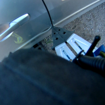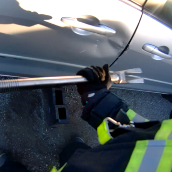Im Anschluss wurde mithilfe vom Hydraulische Rettungssatz (Schere & Spreizer) die Beifahrertüre geöffnet. Da es sich um keine „Crash-Rettung“ handelte, wurde der Fahrer über den Kofferraum und einem Spineboard gerettet.