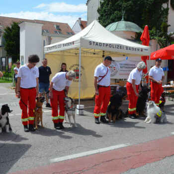 Am Vormittag startete das Fest mit der Feuerlöscherüberprüfungen durch die Firma W.Wienerl Feuerlöschtechnik, einen Infostand der Stadtpolizei Baden und einer Vorführung der ÖRHB (Österreichischen Rettungshundebrigade).