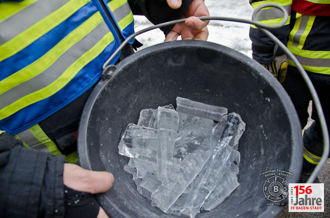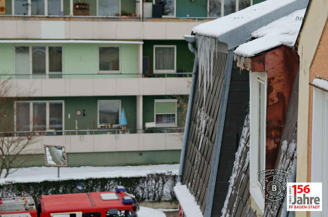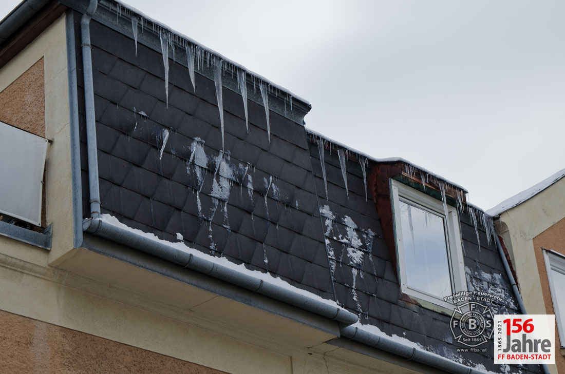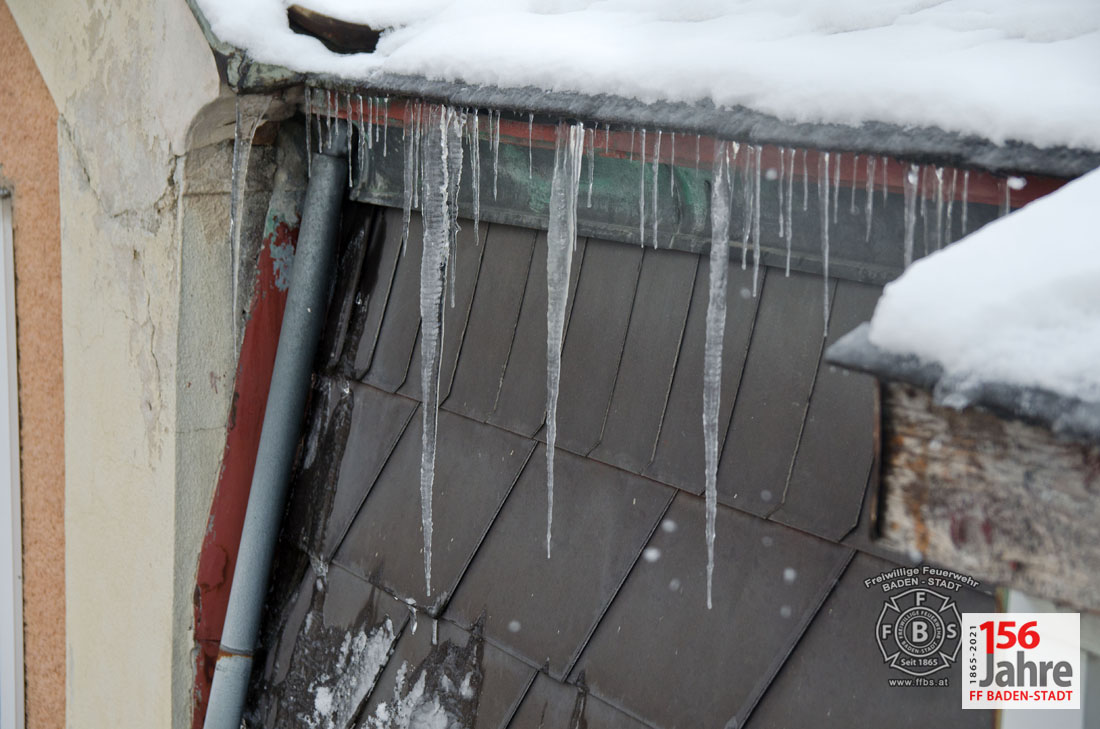 Das Tauwetter in den vergangenen Tagen sorgte dafür, dass die Schneepracht auch in Baden leider schnell wieder verschwand. Jedoch durch nächtlichen Frost bildeten sich an vielen Gebäuden gefährliche Eiszapfen. So auch in der Badener Innenstadt, wobei hier Eiszapfen bis zu einem Meter Länge bei einem Wohnhaus Passanten und geparkte Fahrzeuge gefährdeten. Der Hausbewohner ersuchte bei der Feuerwehr um Hilfe.