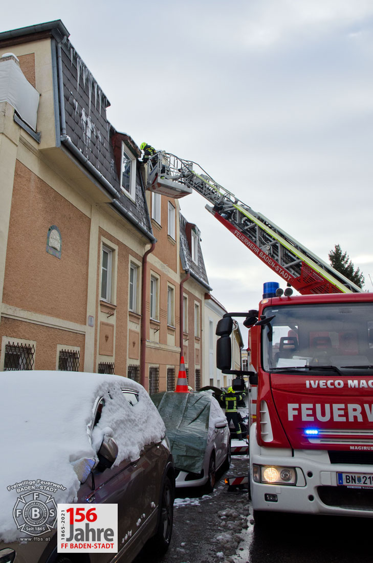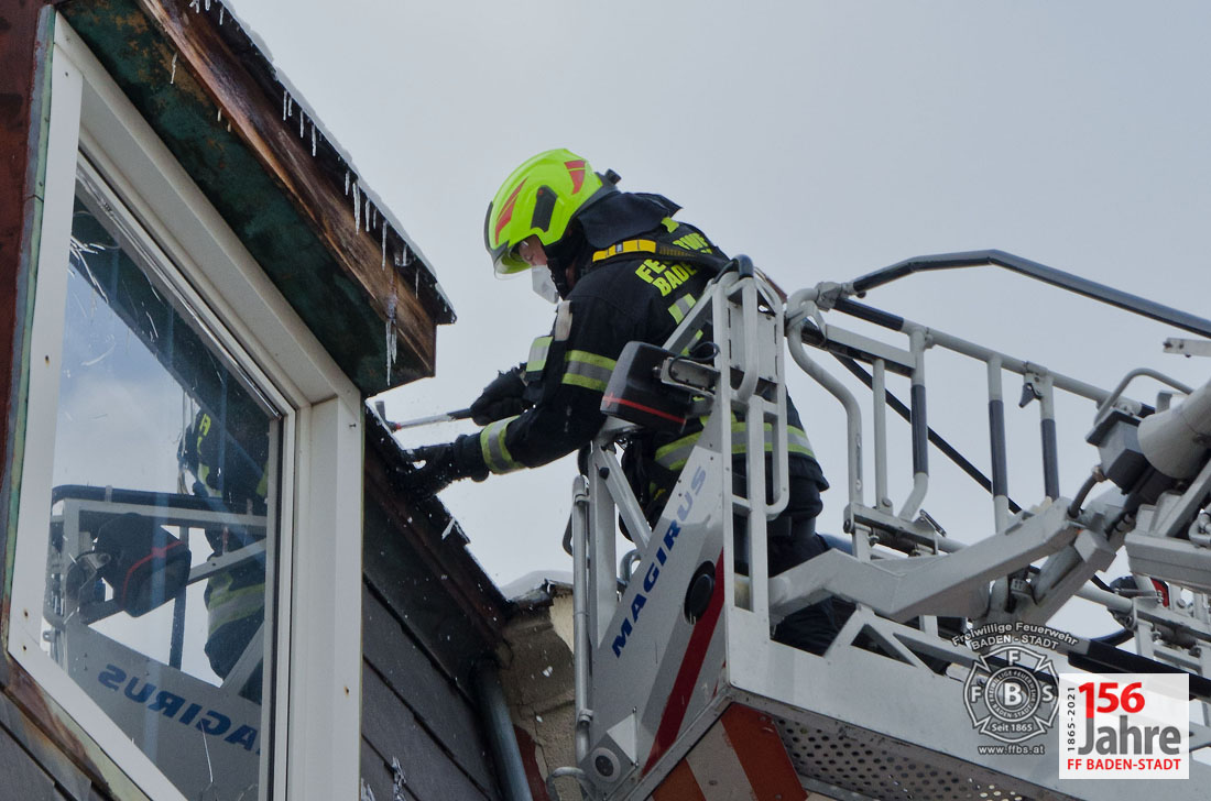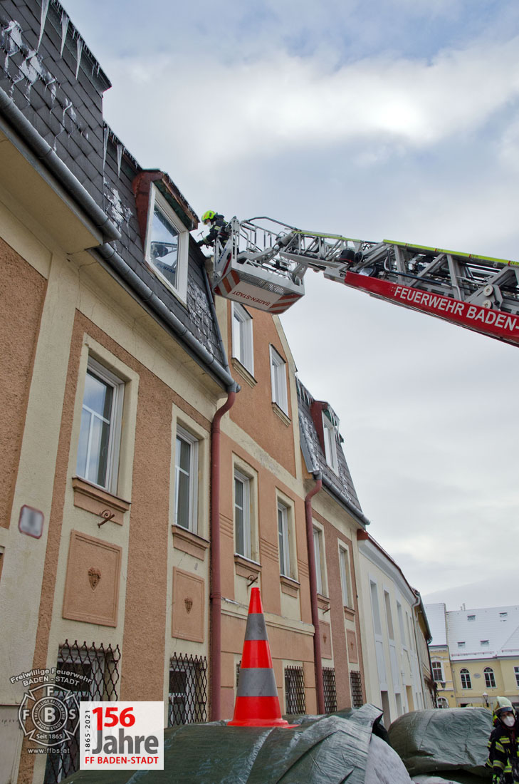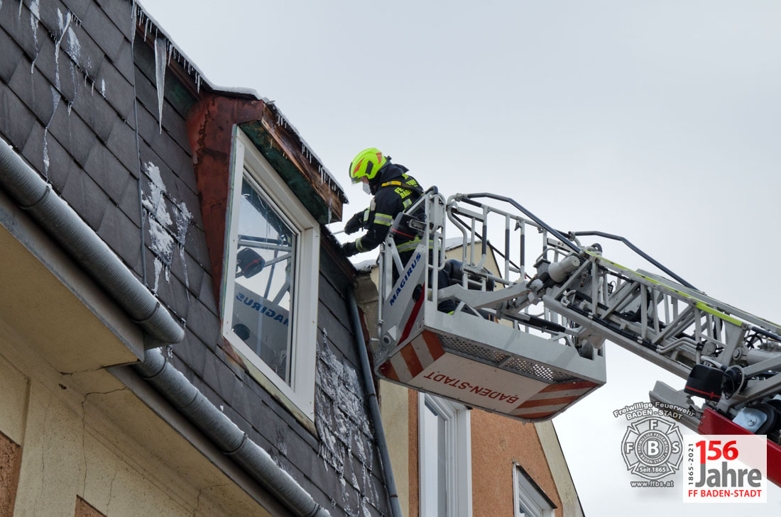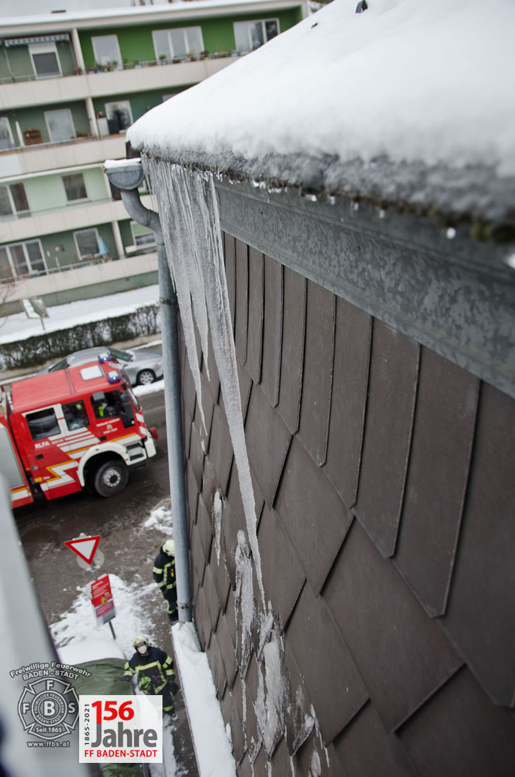 Das Tauwetter in den vergangenen Tagen sorgte dafür, dass die Schneepracht auch in Baden leider schnell wieder verschwand. Jedoch durch nächtlichen Frost bildeten sich an vielen Gebäuden gefährliche Eiszapfen. So auch in der Badener Innenstadt, wobei hier Eiszapfen bis zu einem Meter Länge bei einem Wohnhaus Passanten und geparkte Fahrzeuge gefährdeten. Der Hausbewohner ersuchte bei der Feuerwehr um Hilfe.