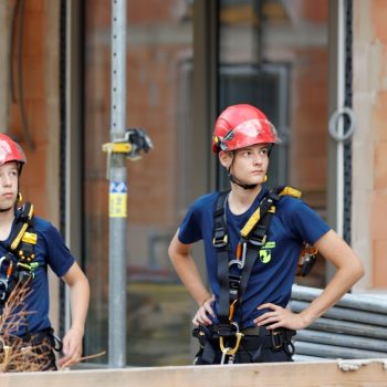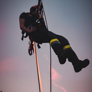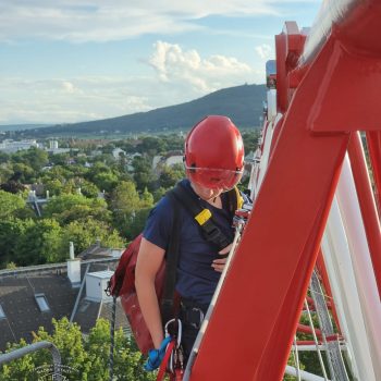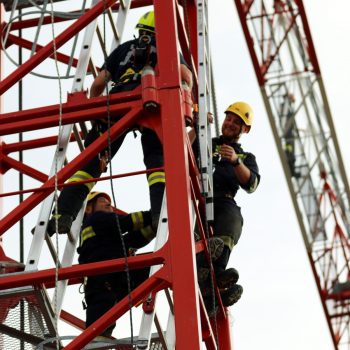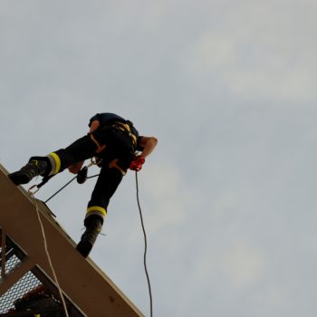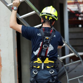Ziel dieser Übung war es, den Umgang mit der Hakenleiter wieder aufzufrischen und sich dann anschließend vom ca. 30m hohen Kran abzuseilen. Hierfür gelang es unseren Weikersdorfer Kameraden eine Übung an einem Turmdrehkran auf einer realen Baustelle zu organisieren. Zudem wurde bis zum Ende des Auslegers ein Seil gespannt, um sicher bis nach vorne zu kommen.