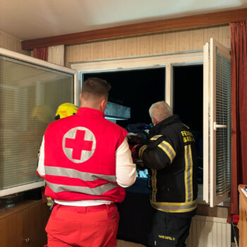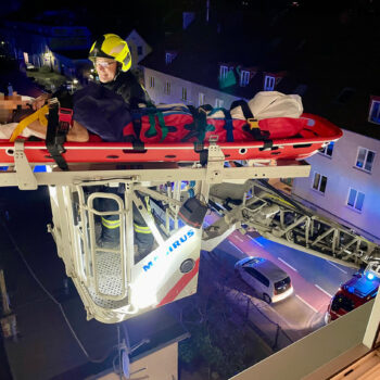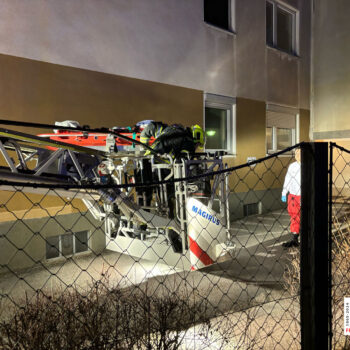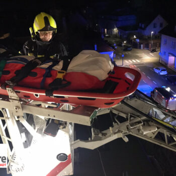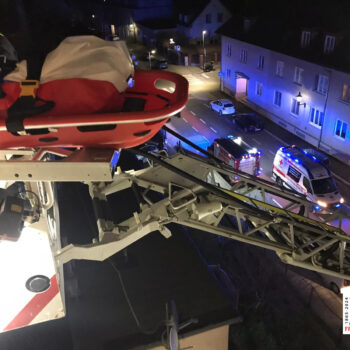 Beim Eintreffen des Vorausrüstfahrzeuges war bereits die Stadtpolizei sowie das Rote Kreuz vor Ort. Aufgrund eines gekippten Fensters bot sich die Rettung über die Drehleiter gut an. Innerhalb wenigen Minuten konnte das Fenster geöffnet und die Wohnung betreten werden. Nach Rücksprache mit dem Roten Kreuz wurde die Patientin anschließend mittels der Drehleiter und einer Korbschleiftrage sanft zu Boden gebracht, wo sie dann an den Rettungsdienst übergeben wurde.