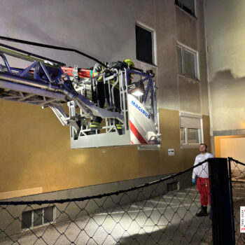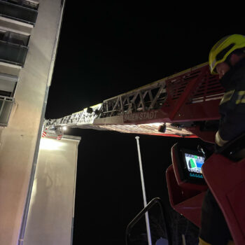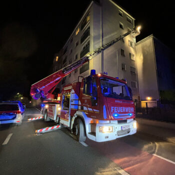 Knapp vier Stunden später wurden wir mit dem gleichen Alarmstichwort zur gleichen Adresse, aufgrund von Hilferufen aus der Wohnung alarmiert. Beim Aufstellen der Drehleiter konnte die Dame bereits die Türe von selbst öffnen.