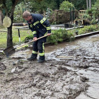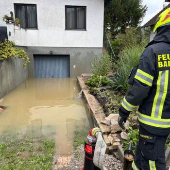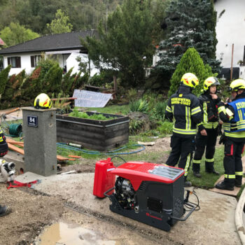 Zunächst bestand unsere Aufgabe darin, Straßen und Wege vom Schlamm zu befreien. Zeitgleich wurden zwei Tiefsaugpumpen eingesetzt, um verschiedenste Keller und Einfahrten auszupumpen. Gegen 14 Uhr wurden die ersten Einsatzkräfte abgelöst und um 19 Uhr konnten alle Mitglieder der FF Baden-Stadt von der Krainerhüttensiedlung abrücken.
