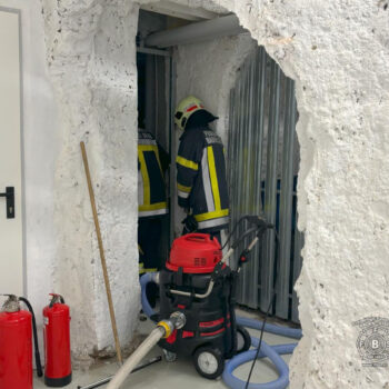 Am Einsatzort angekommen stellte sich schnell heraus, dass es sich ”nur” um ein defektes Rohr der Fernwärme handelte welches eine enorme Hitze verursachte. Dadurch stand der Heizraum ungefähr 25cm unter Wasser. Mittels Einsatz von Naßsaugern konnte das ausgeflossene Wasser abgepumpt werden. Anschließend wurde die Einsatzstelle an den nachgeforderten Techniker des betroffnen Energieversorgers übergeben.