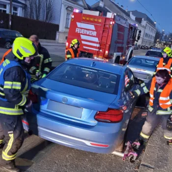 Nachdem eine Autofahrerin ein parkendes Fahrzeug angefahren hatte, kam ihr Fahrzeug schließlich am Kaiser-Franz-Joseph-Ring zum Stillstand. Mithilfe von Rangierrollern wurde das beschädigte Fahrzeug an einen sicheren Ort abgestellt und die Batterie abgeklemmt. Anschließend wurde es der Stadtpolizei Baden übergeben.