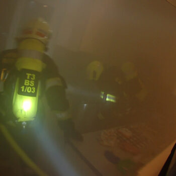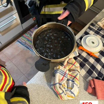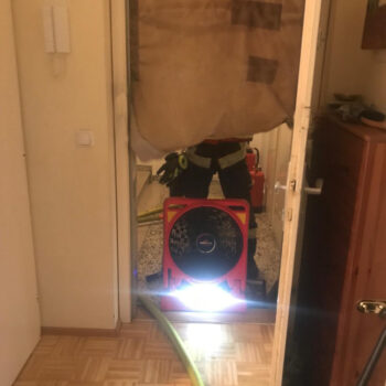 Beim Öffnen der Türe war sofort klar, dass der Brandgeruch von dieser Wohnung stammt, da diese komplett verraucht war. Umgehend rüstete sich der Atemschutztrupp aus und bereitete alles für den Eintritt in die verrauchte Wohnung vor. Dieser konnte feststellen, dass eine am Herd angebrannte Speise der Auslöser für die Verrauchung war. Anschließend wurde das gesamte Stiegenhaus und die betroffene Wohnung druckbelüftet.