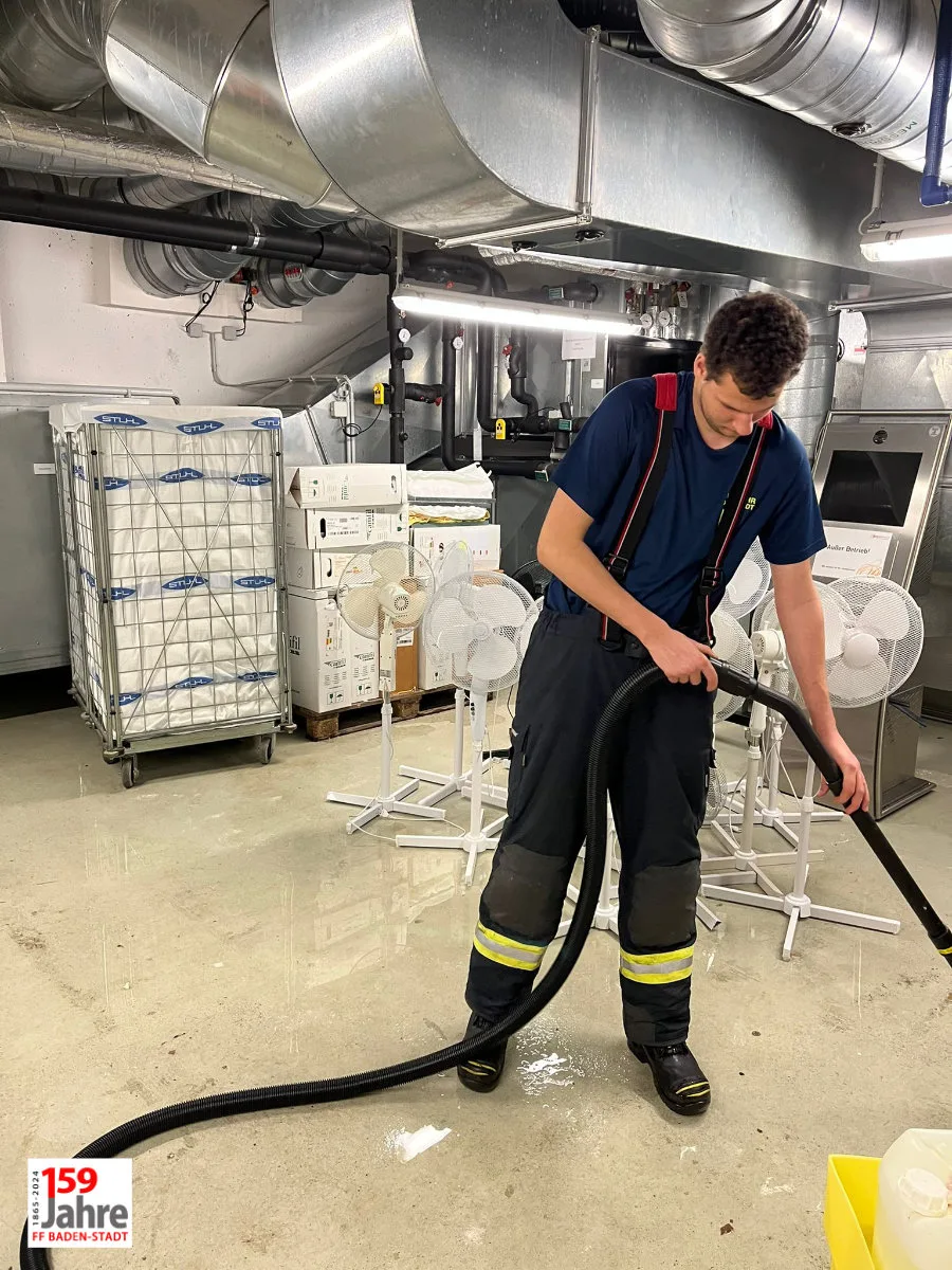 Vor Ort mussten ganze zehn Räume und drei Gänge vom Wasser befreit werden. Mittels Nasssauger und Tiefsaugpumpe wurde das Wasser in den nächstgelegenen Kanal entsorgt.