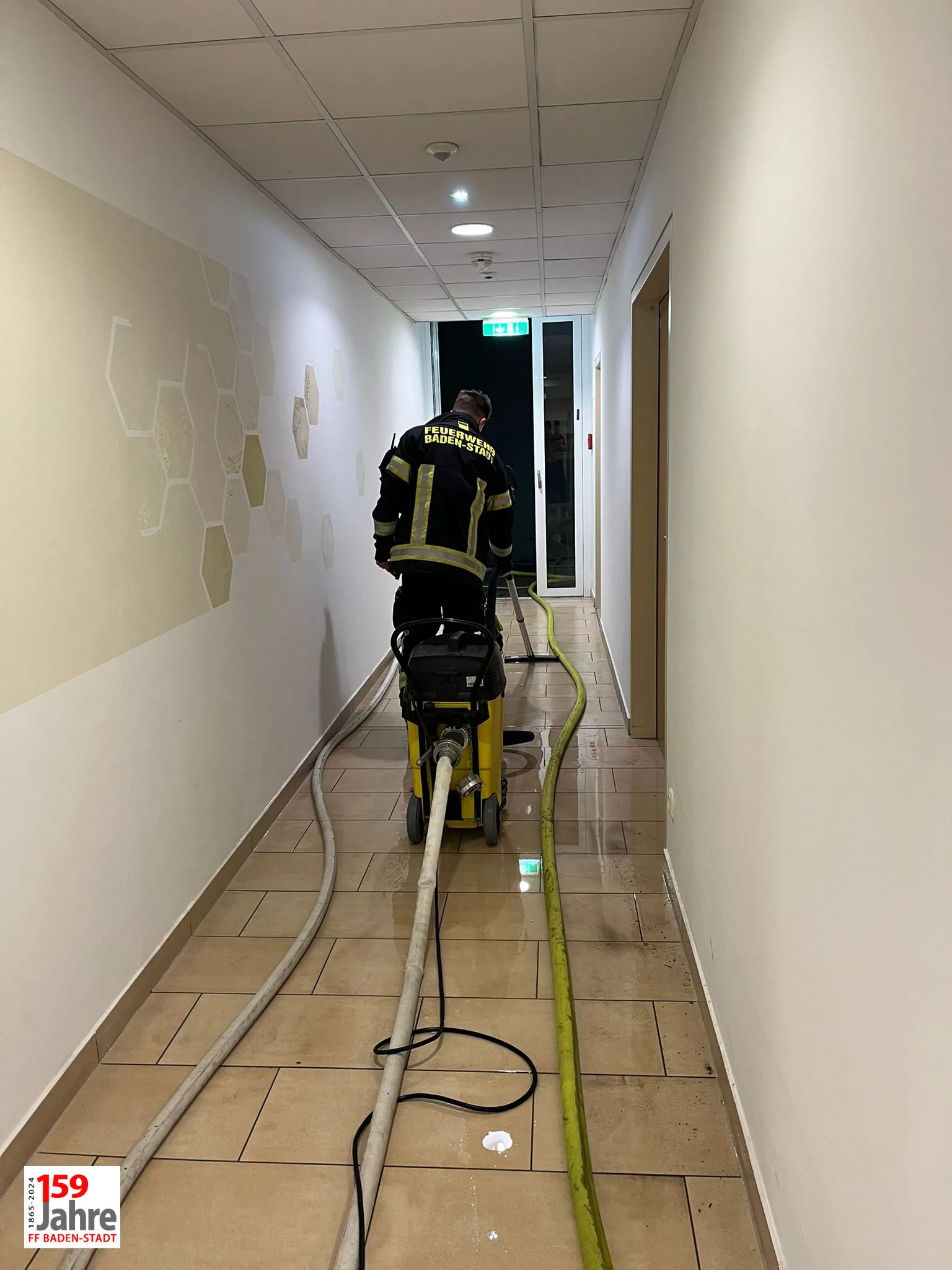Am Samstag, den 14. Dezember, wurden die Mitglieder Freiwilligen Feuerwehr Baden-Stadt um vier Uhr morgens aus dem Schlaf gerissen. Der Grund dafür war ein gebrochenes Heizungsrohr im Heizraum des Badener Hofs.